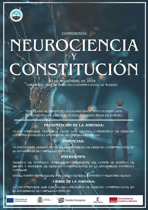 El día 20 de noviembre tendremos la Conferencia sobre Neurociencia y Constitución impartida por FEDERICO DE MONTALVO JÄÄSKELÄINEN (PRESIDENTE DEL COMITÉ DE BIOÉTICA DE ESPAÑA Y PROFESOR DE DERECHO CONSTITUCIONAL EN LA UNIVERSIDAD PONTIFICIA COMILLAS) y DANIEL MARTÍN MONTEALEGRE (PSICÓLOGO GENERAL SANITARIO Y NEUROPSICÓLOGO)